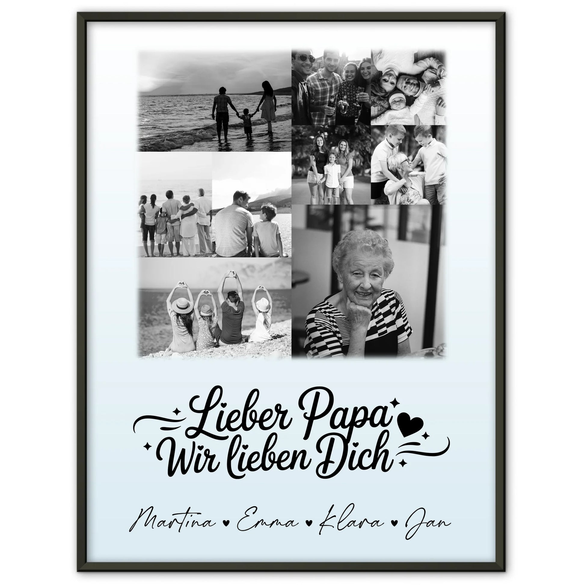 Vatertagsgeschenk Poster mit 9 Fotos Lieber Papa wir lieben Dich Schwarz-Weiß Personalisiert