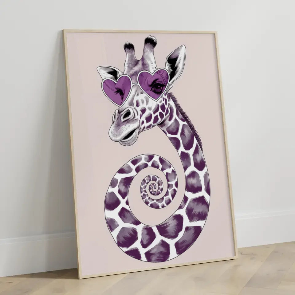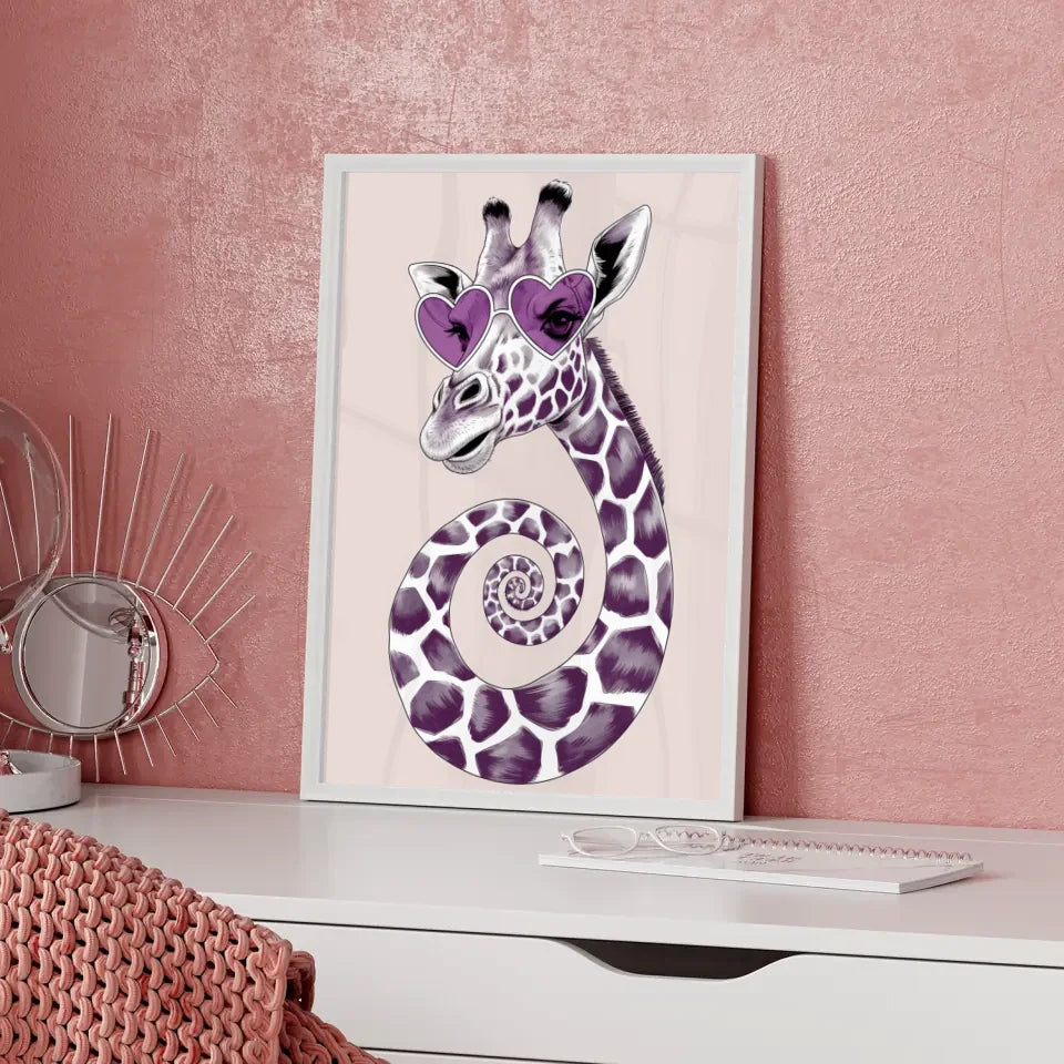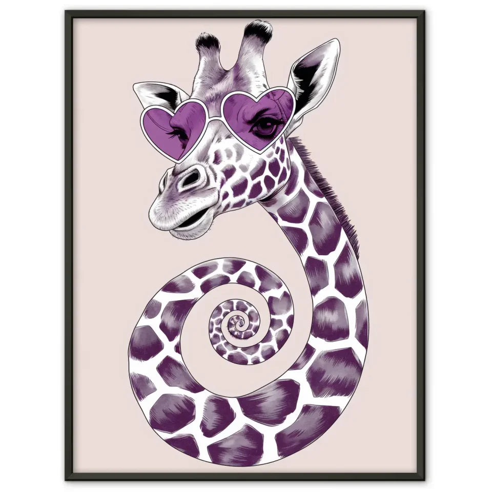 Verspielter Giraffen Poster mit herzförmiger Sonnenbrille und Lila GlÀsern