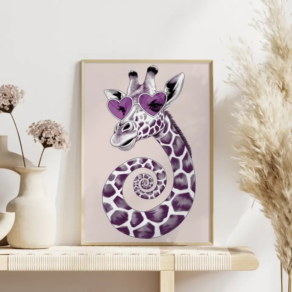 Verspielter Giraffen Poster mit herzförmiger Sonnenbrille und lila GlÀsern