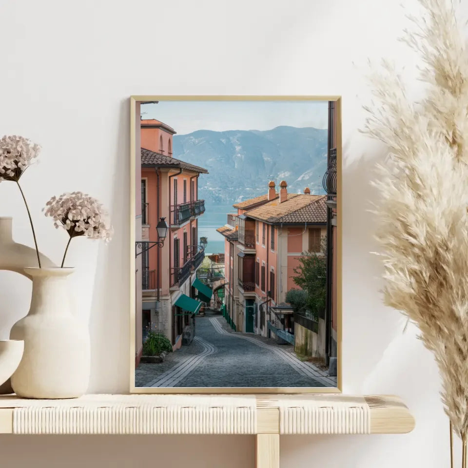 Bringen Sie mit dem Vintage europäischen Straßenszene Poster einen Hauch von italienischem Flair in Ihr Zuhause und genießen Sie die entspannende Ausstrahlung dieses einzigartigen Kunstwerks.