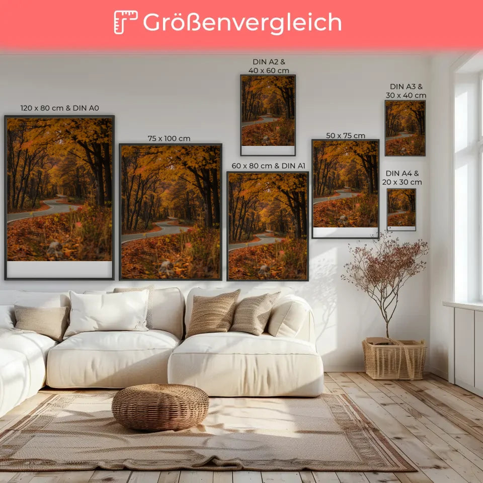 Kombinieren Sie das Vintage Poster mit weiteren Herbstbildern aus unserer Kollektion und gestalten Sie eine stimmungsvolle Galerie an Ihrer Wand. Jedes Poster wird auf hochwertigem Material gedruckt, um Ihnen langanhaltende Freude an Ihrem neuen Kunstwerk zu garantieren. Verleihen Sie Ihrem Ambiente mit diesem unverwechselbaren Vintage Poster den letzten Schliff und genießen Sie die zeitlose Eleganz, die es mit sich bringt.
