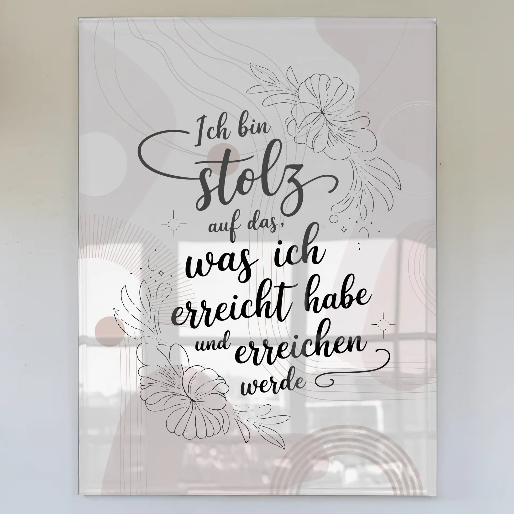 Entdecke das perfekte Geschenk für jeden Anlass: Das Wandbild Acrylglas - Stolz auf Erreichtes und Kommendes. Dieses personalisierbare Kunstwerk ist nicht nur ein dekoratives Highlight, sondern auch eine tägliche Motivation. Mit dem schönen Spruch 'Ich bin stolz auf das, was ich erreicht habe und erreichen werde' erinnert es dich täglich an deine Erfolge und Ziele.