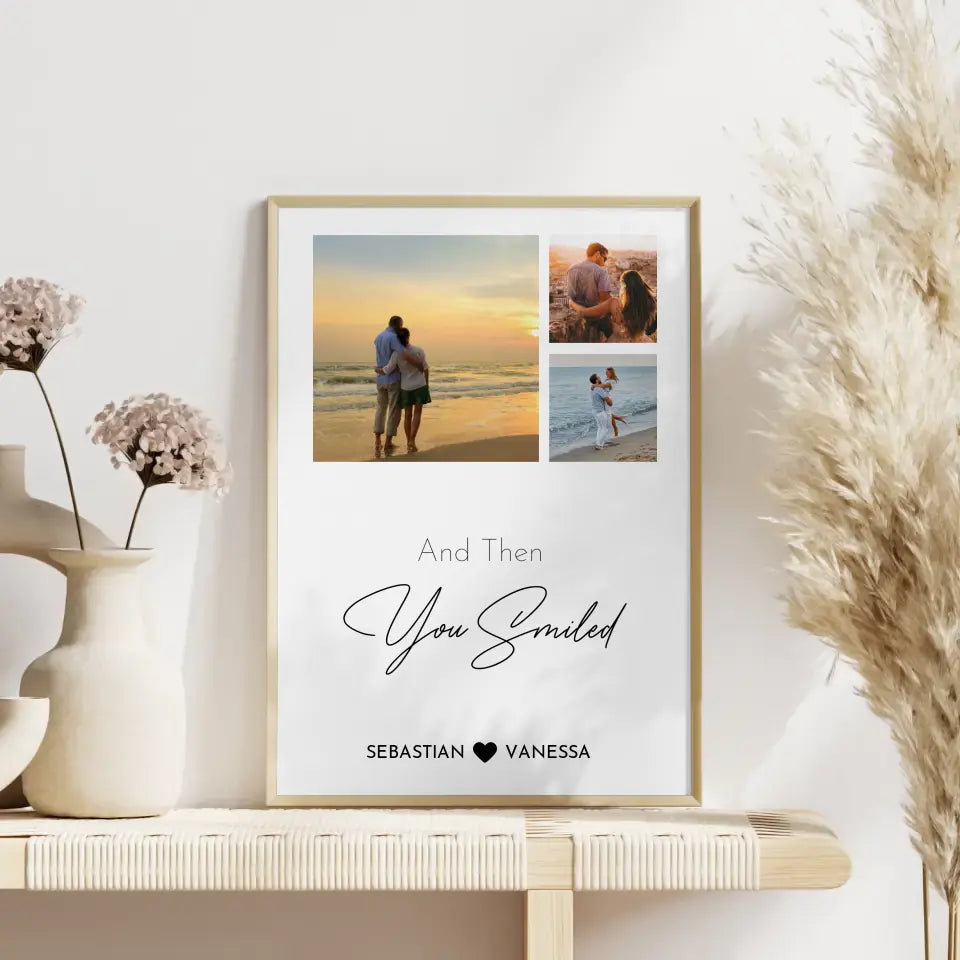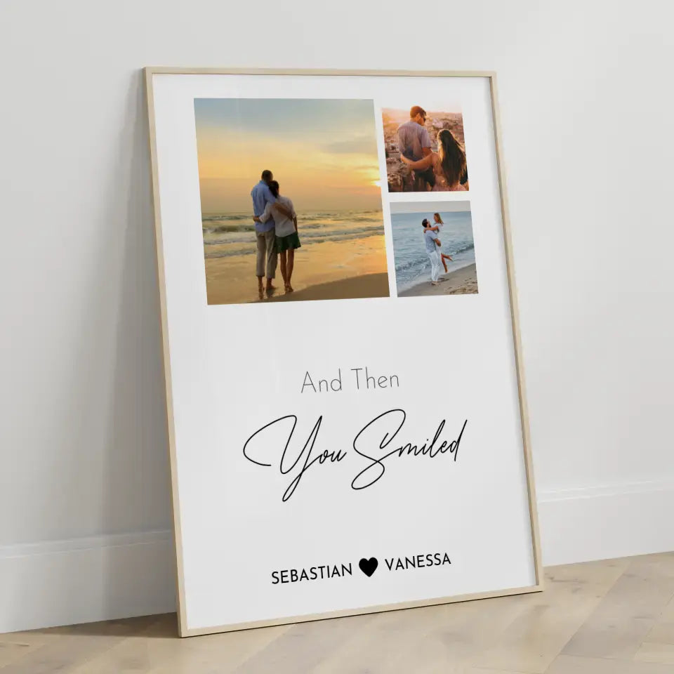 Du würdest gerne etwas einzigartiges schenken? Dann ist unser Wandbild Liebe Fotocollage You Smiled Mit Fotos & Namen das perfekte personalisierbare Geschenk.
