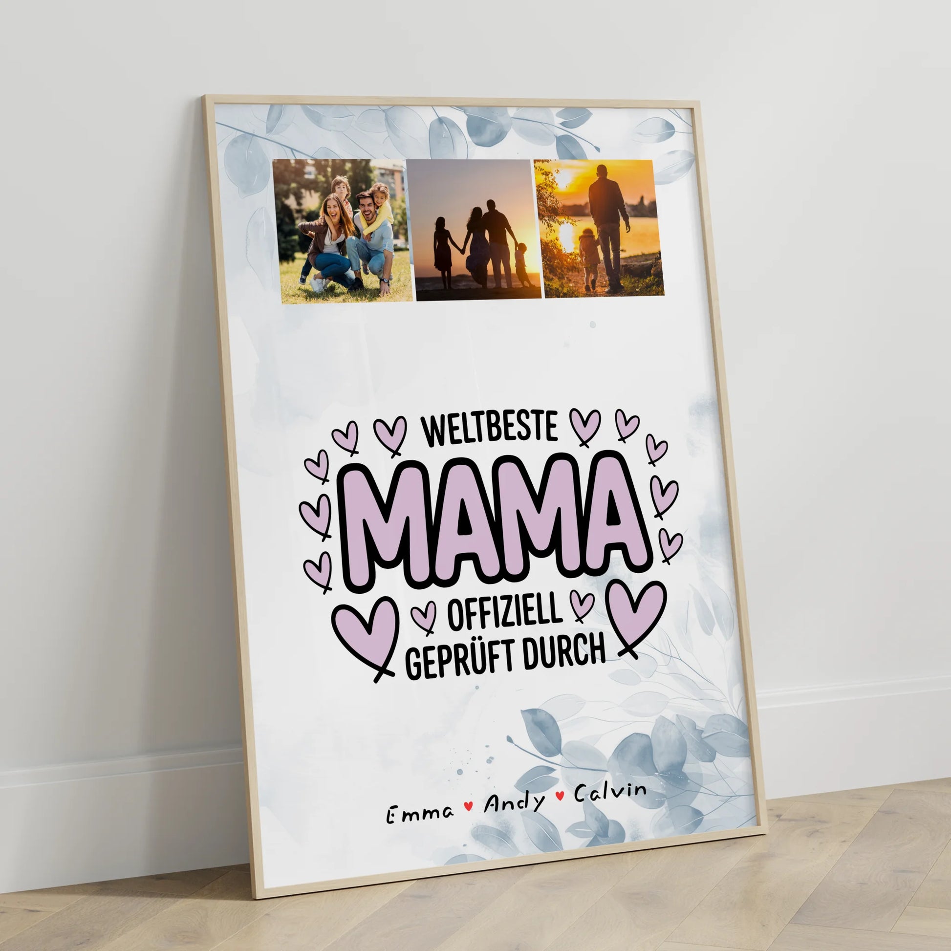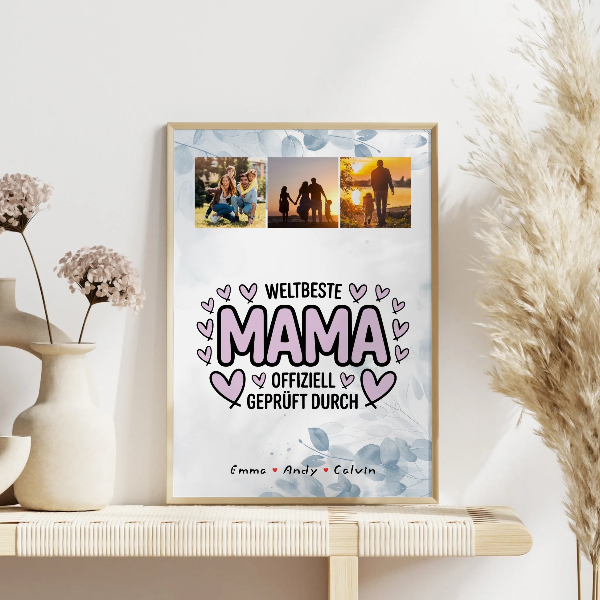 Weltbeste Mama Poster mit Fotocollage personalisiert Mama Geschenk Offiziell Geprüft Durch - Das perfekte Geschenk zum Muttertag