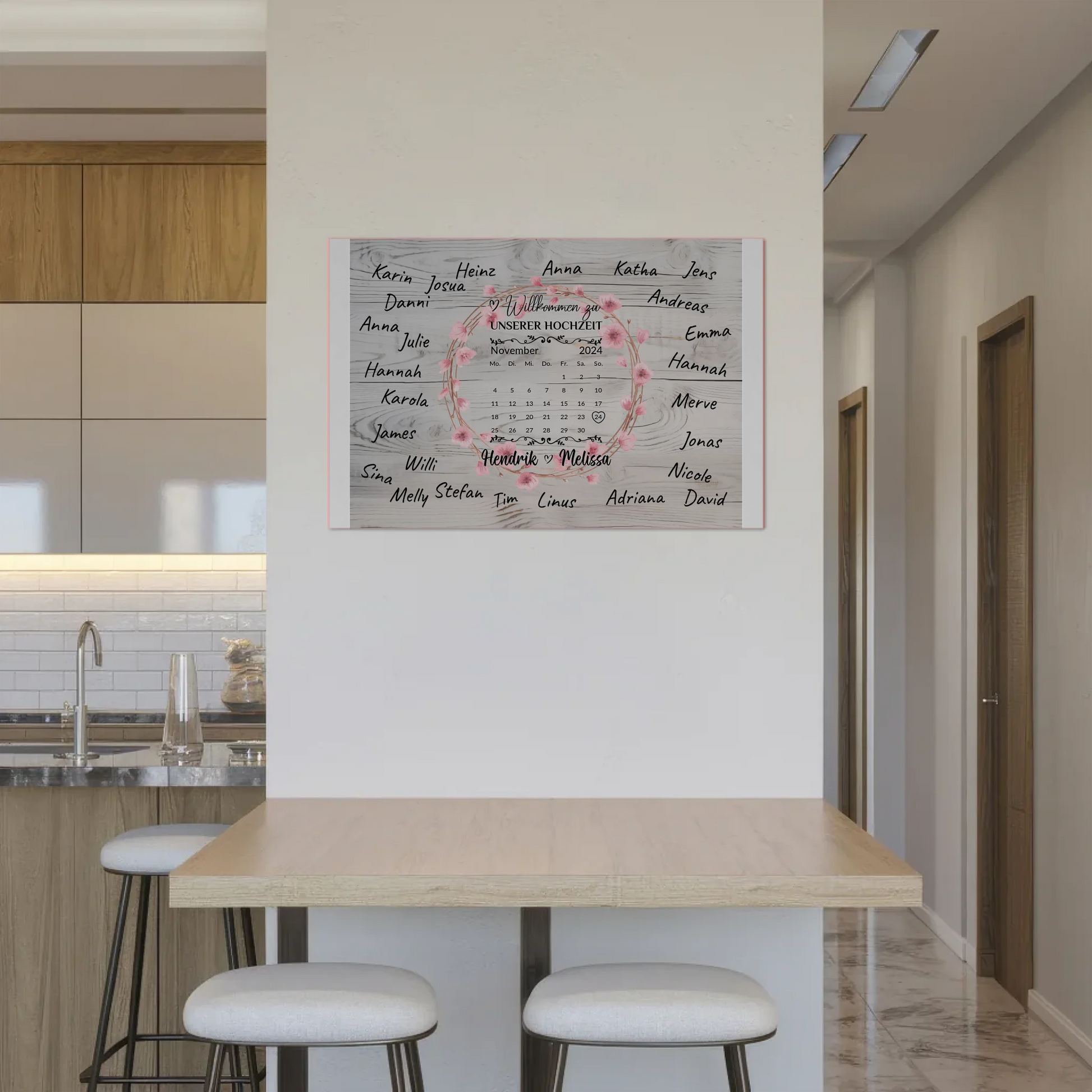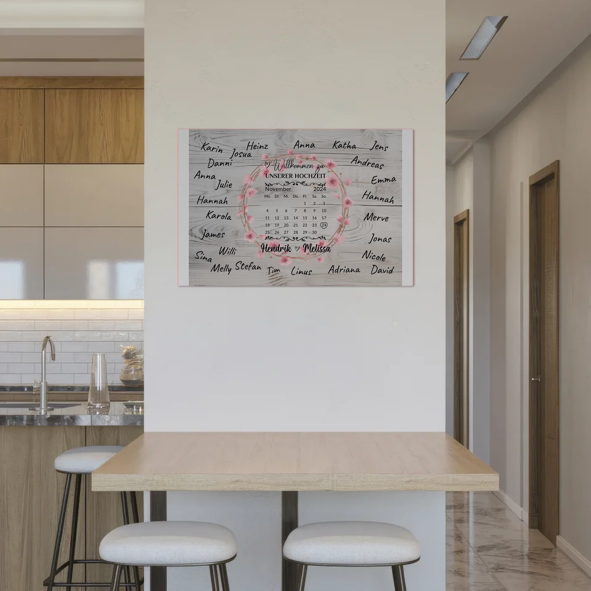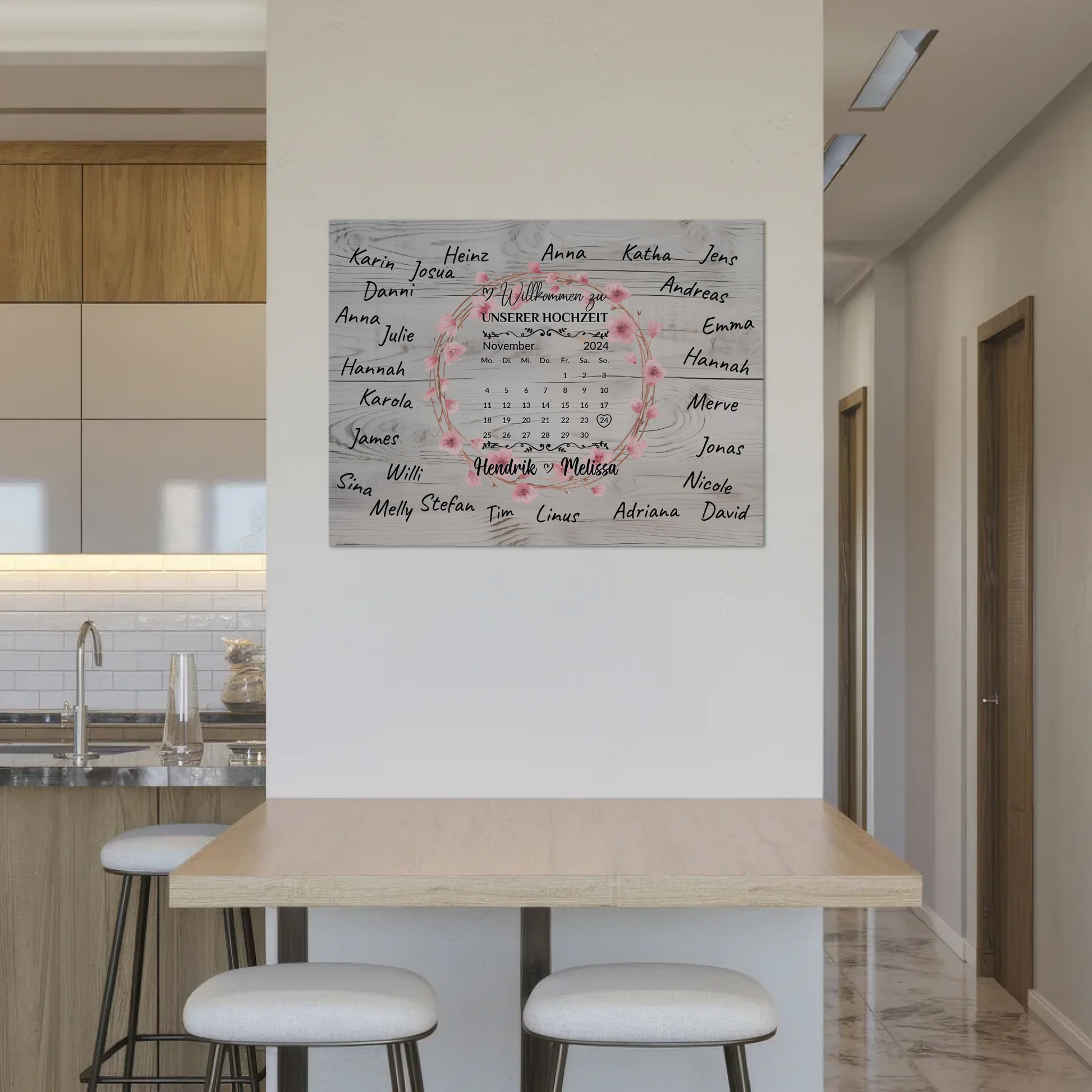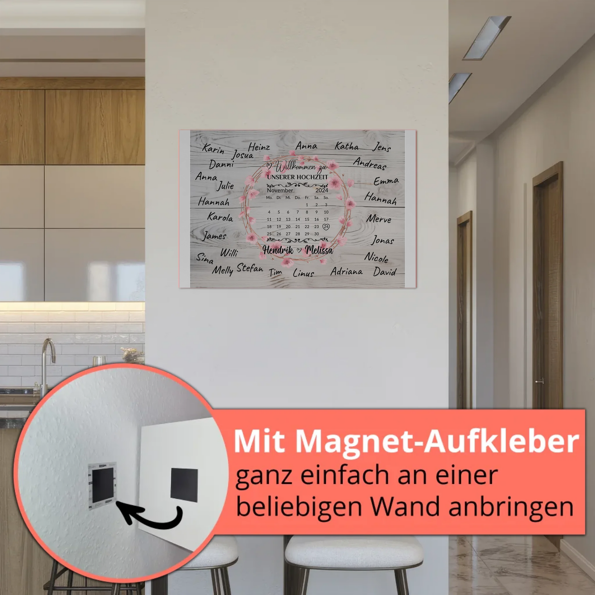 Willkommens Fotoboard Hochzeit mit Blumenkranz personalisiert