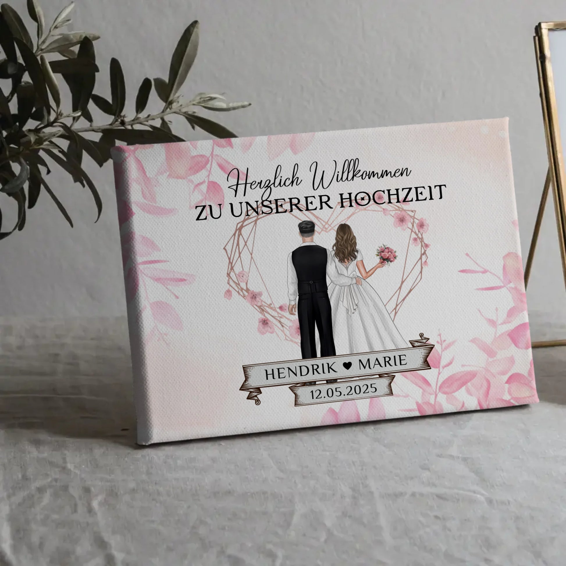 Willkommens Leinwand Hochzeit Rosa Floral mit Namen gestalten