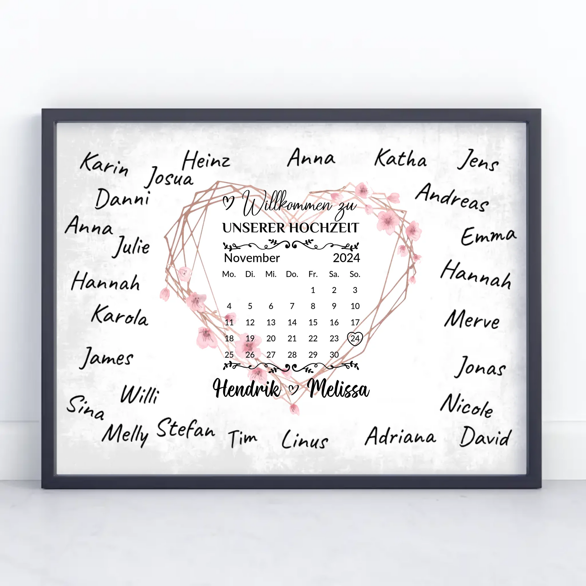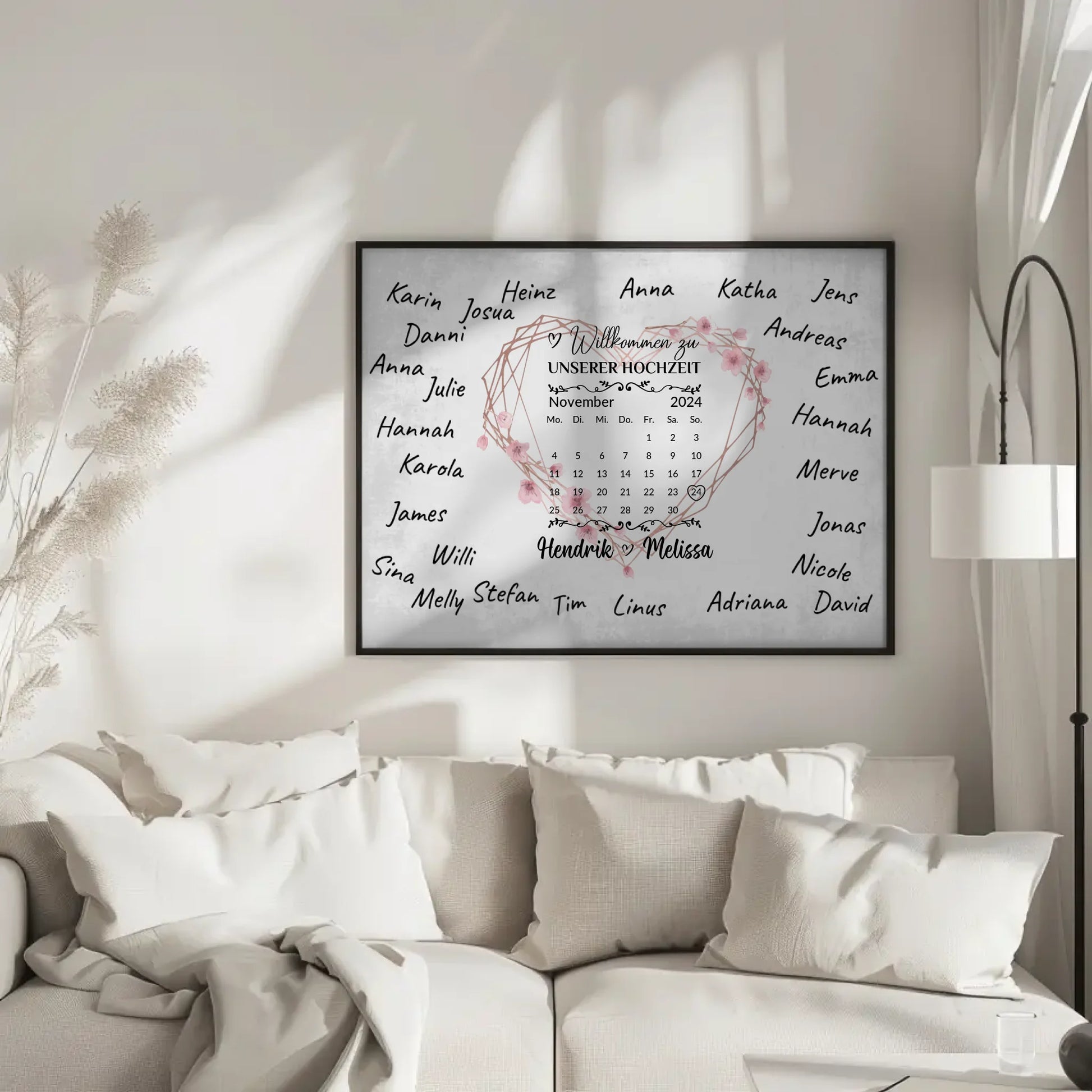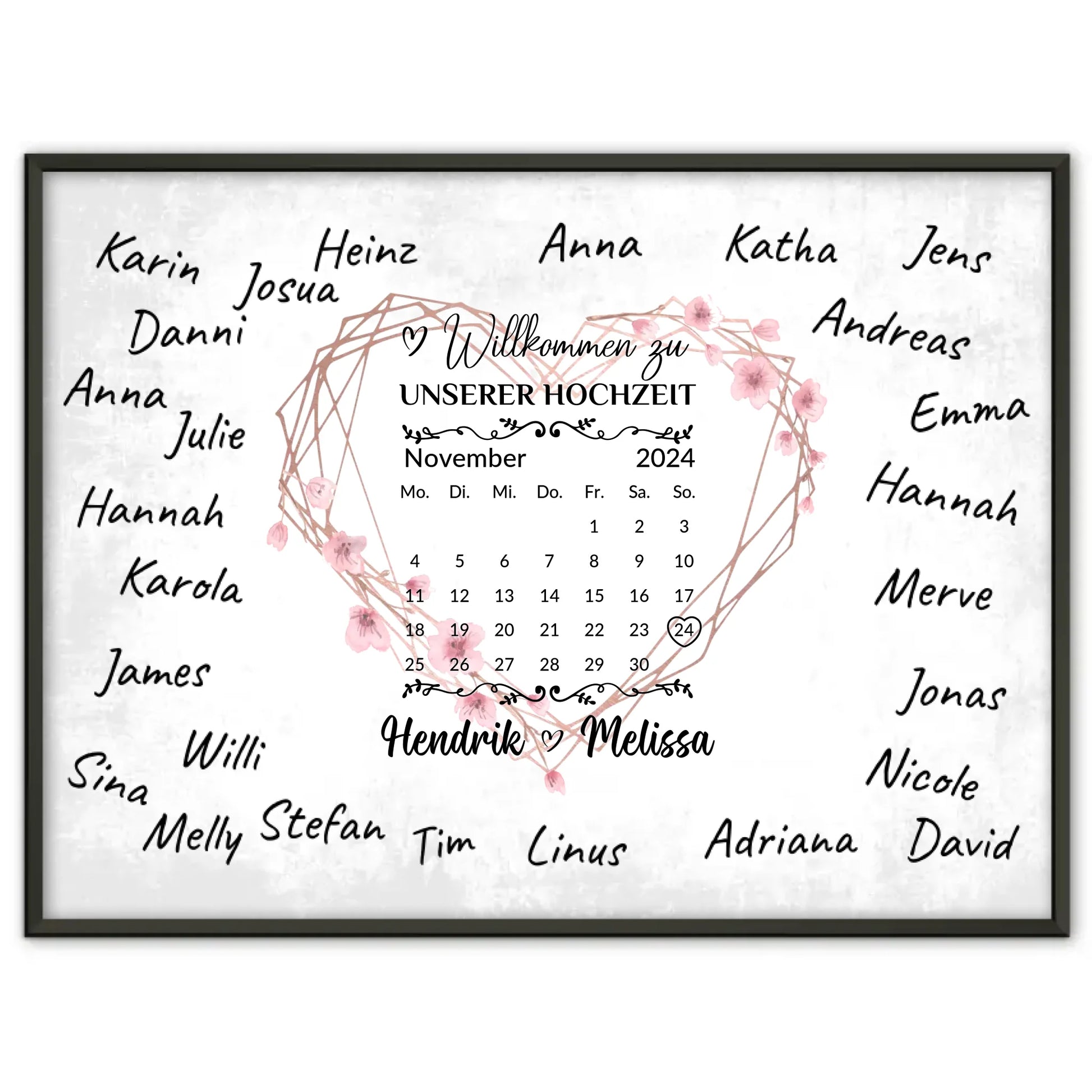 Willkommensposter Hochzeit für eigene Unterschriften Herz Kranz