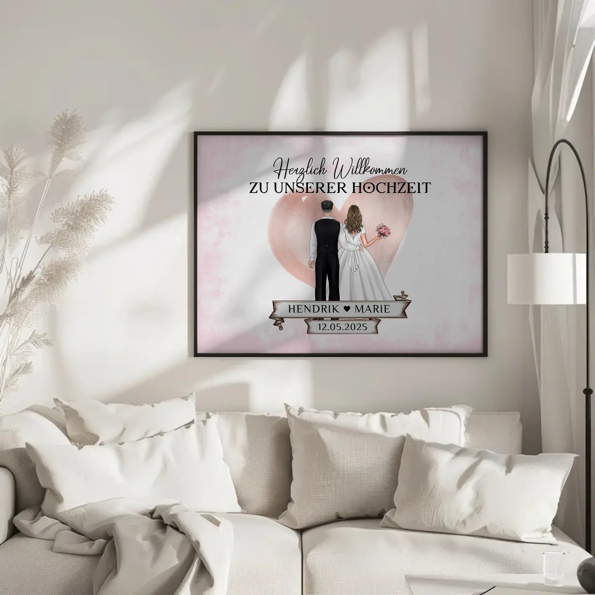 Egal ob als dekoratives Element am Eingang oder als liebevolles Geschenk zum Hochzeitstag – unser Willkommensposter Hochzeit heißt alle Gäste herzlich willkommen. Mit dem Poster Hochzeit Herzlich Willkommen sorgst du für einen unvergesslichen Eindruck und schaffst sofort eine festliche Atmosphäre.