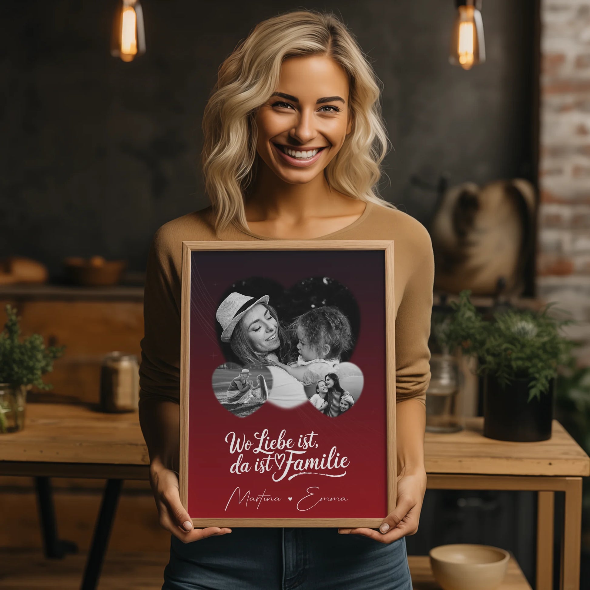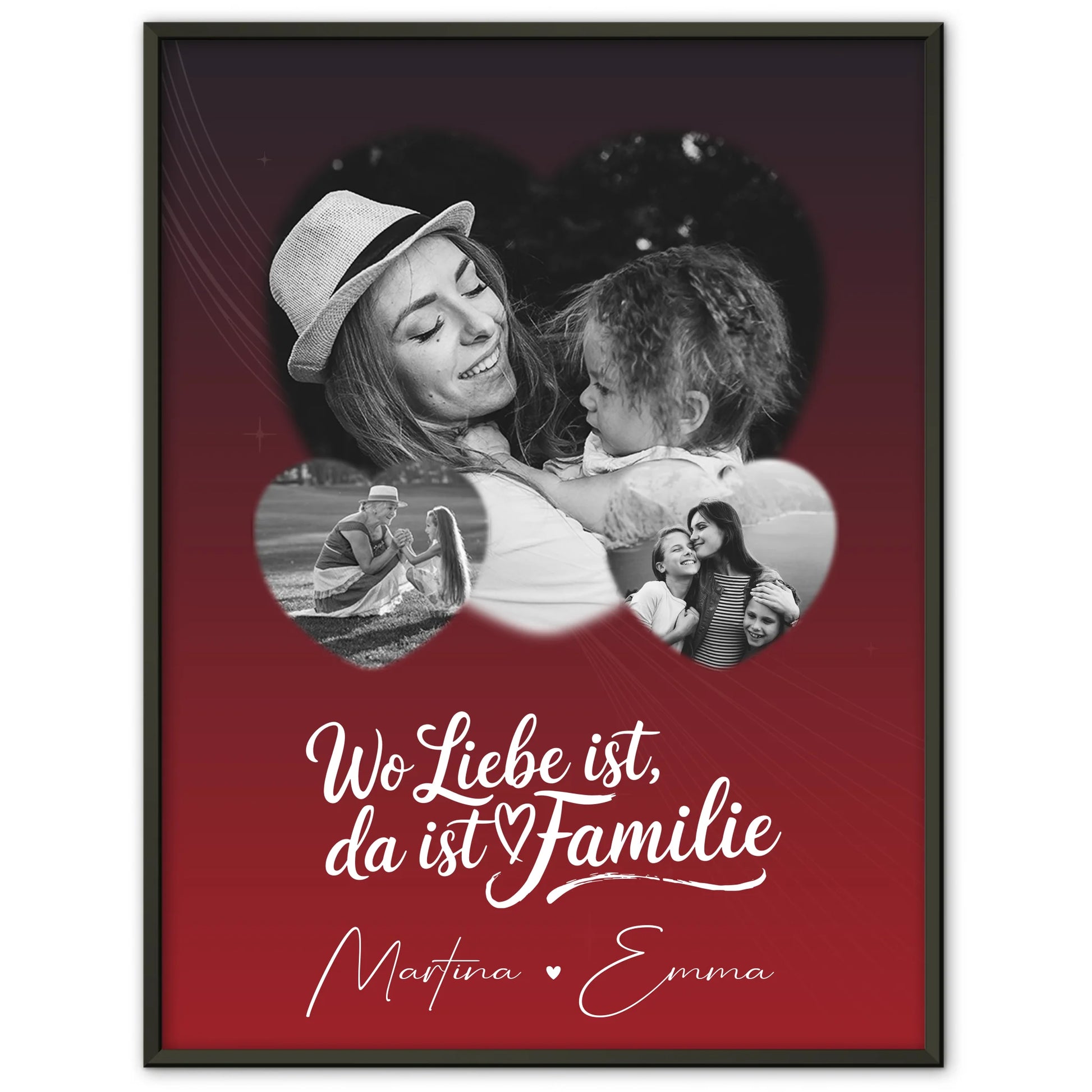 Wo Familie ist: Dein personalisiertes Familienposter mit Namen und 3 Herz Fotos